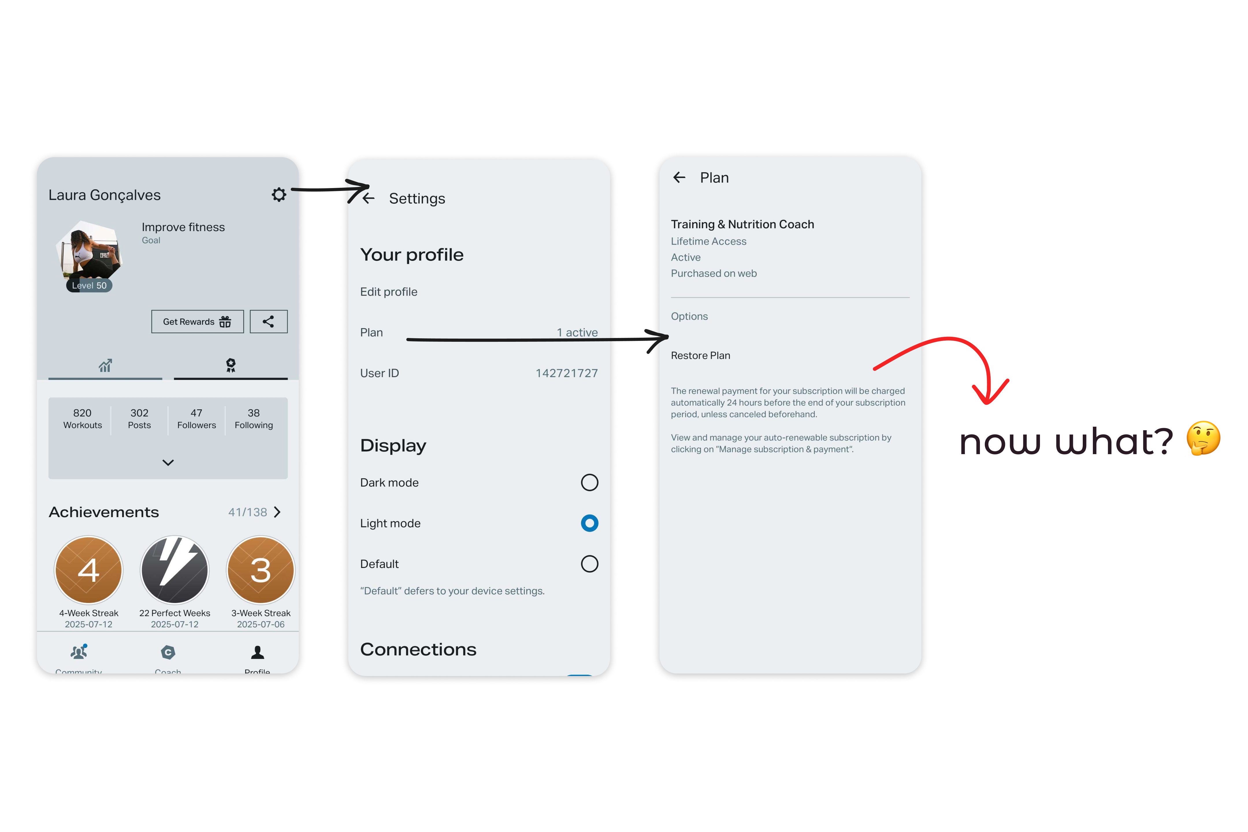 At Freeletics, most users purchase their subscriptions through the website, but their day-to-day interaction with the product happens entirely in the app. When it came time to cancel, this disconnect led to confusion: there was no clear way to manage subscription settings from within the app itself.